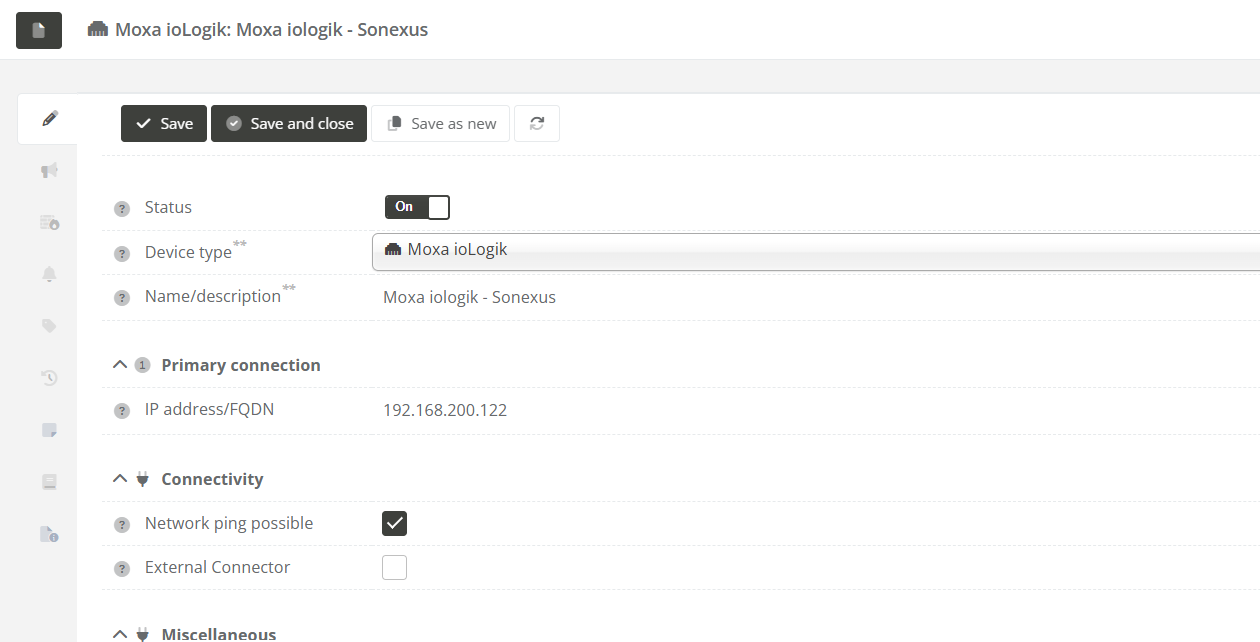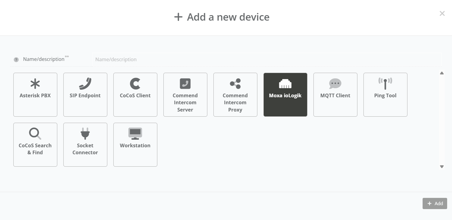 Create a Moxa ioLogik device in CoCoS.