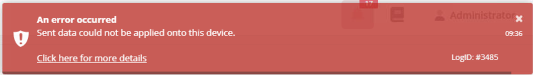 When saving a device an error occures saying: "Sent data could not be applied onto this device", see also the example below: